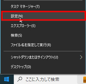 - Windowsのスタートメニューを右リックし、[設定]をクリックします。