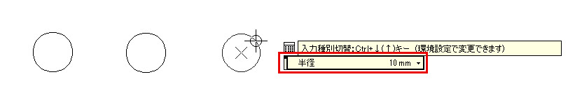 - 図脳RAPIDPROでダイナミックガイドを使用している場合は、半径入力欄に[半径]のみが表示されて、指定数値で円が作図できるか確認します。