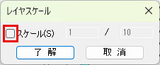 [スケール]欄のチェックを外して、[了解]ボタンを押します。 - [作図設定]ダイアログボックスに戻ります。