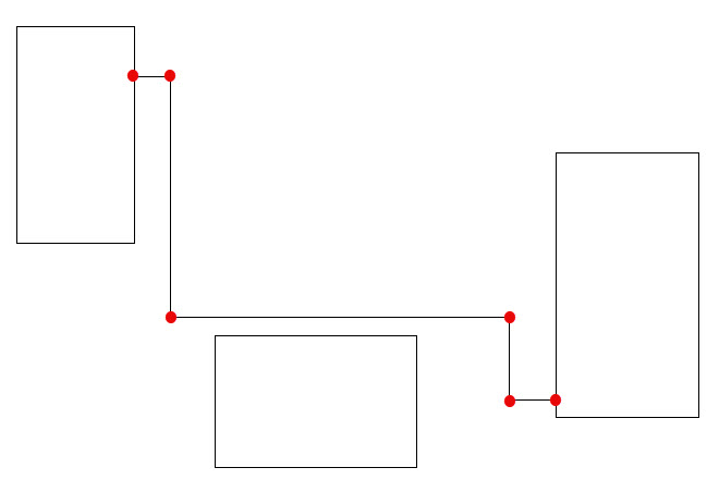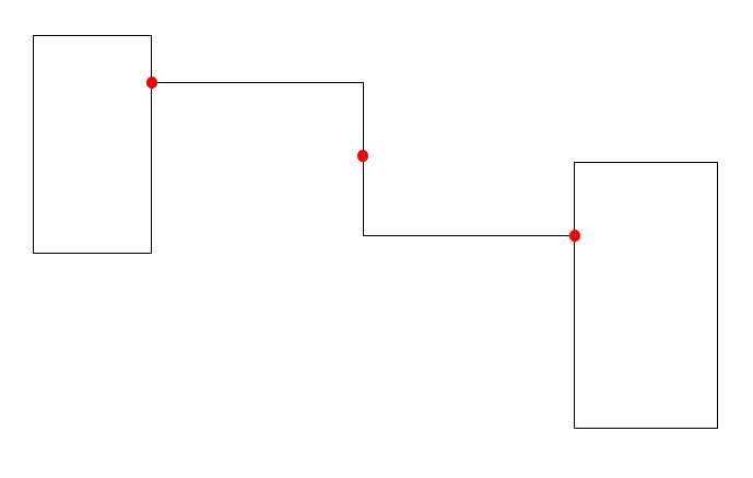 - 各折点にグリップ点(青色の四角形)が表示されます。
