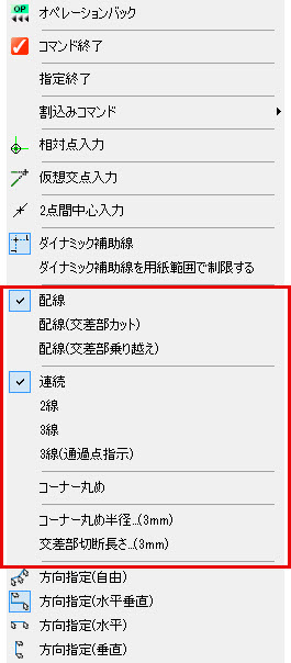 操作方法は、[連続][2線][3線][3線(通過点指示)]の4種類があり、右クリックメニューから切り替え可能となっています。