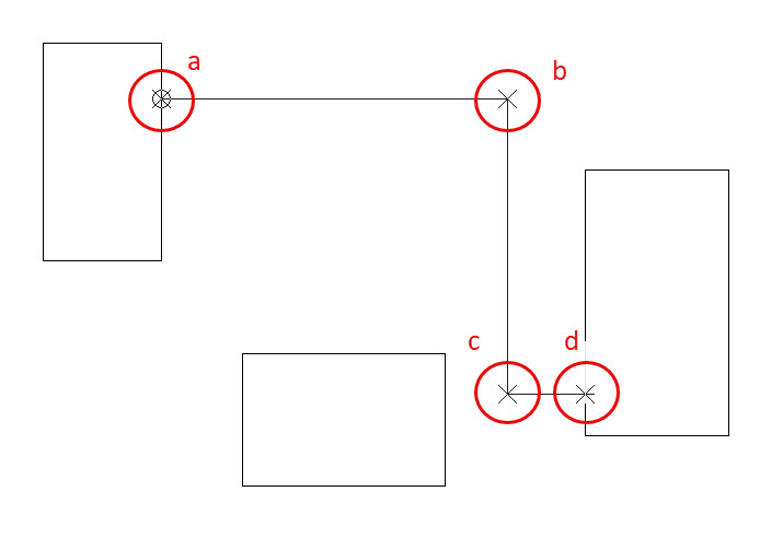 始点(a)をクリックした後、通過点(b)、(c)、(d)をクリックします。