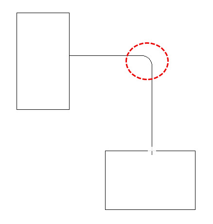 [コーナー丸め半径]をクリックすると、丸め半径を指定する数値入力ボックスが表示されます。キーボードから丸め半径を入力して[Enter]キーを押すと、コーナーの半径を指定できます。 - [配線(交差部カット)]をクリックしてチェックを付けると、配線が交差した場合に一方の配線の交差部分をカットすることができます。