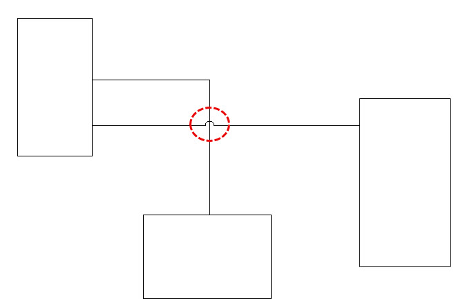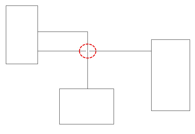 [3線(通過点指示)]・・・始点と終点を指示後、通過点を指示して3線の配線を作図します。キーボードの[スペース]キーを押して引き出し線の方向を切り替えることができます。