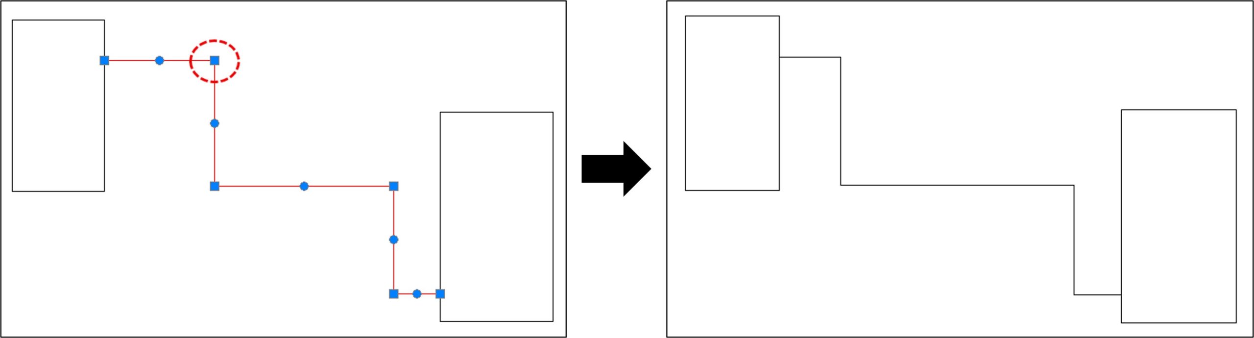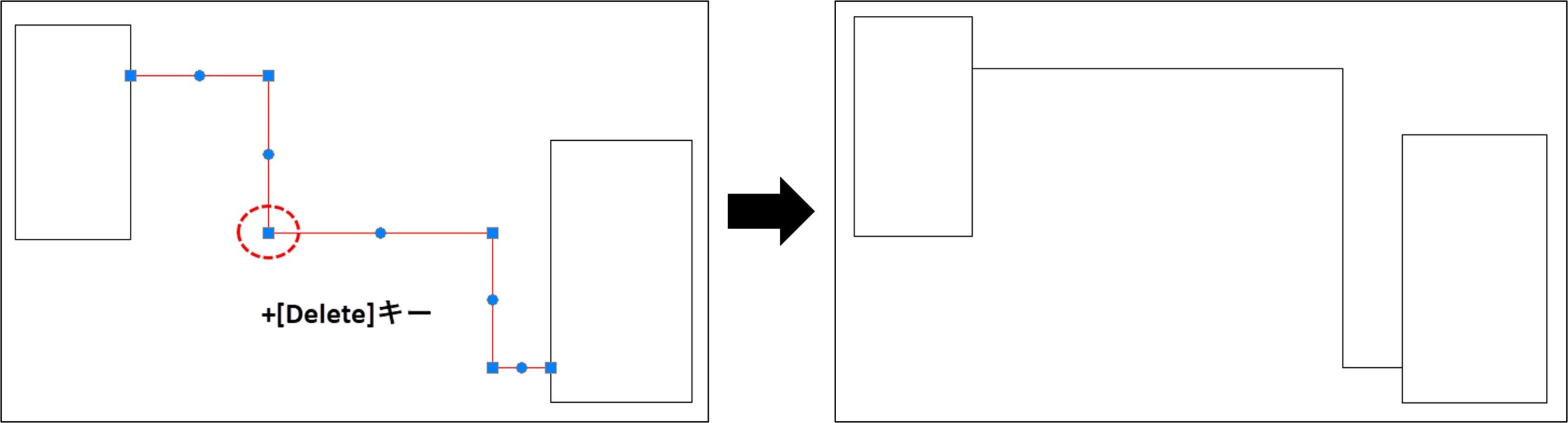 折点を削除する場合は、削除したい折点(青色の四角形)をクリックし、[Delete]キーを押すと、折点を削除することができます。