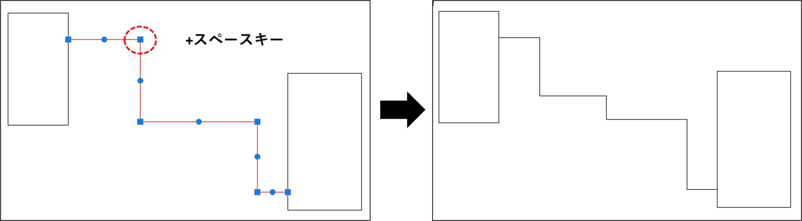折点を追加する場合は、追加したい折点(青色の四角形)をクリックし、[スペース]キーを押します。