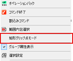 ※上図のような表示にならない場合は、右クリックメニューの[矩形グリップ点モード]をクリックしてチェックを外します。詳細は「矩形グリップ点モードとは/図形グリップ点モードとは」をご参照ください。