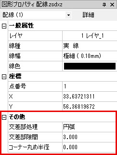 また、交差部処理の設定は[図形プロパティ]で編集することができます。