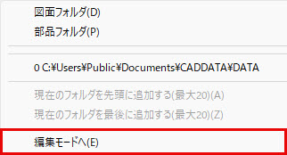 - 登録したフォルダを削除する場合は、[編集モードへ]をクリック後、削除したいフォルダを右ボタンクリックし、[編集モード終了]をクリックします。