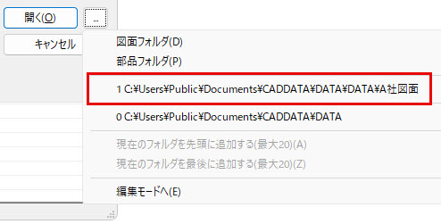 階層の深い場所にあるフォルダも、ダイアログボックス内から1クリックで素早く開けるため、ファイルを探す手間が省け、設計作業の効率が大幅に向上します。