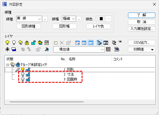 - [作図設定]ダイアログボックスが表示されます。