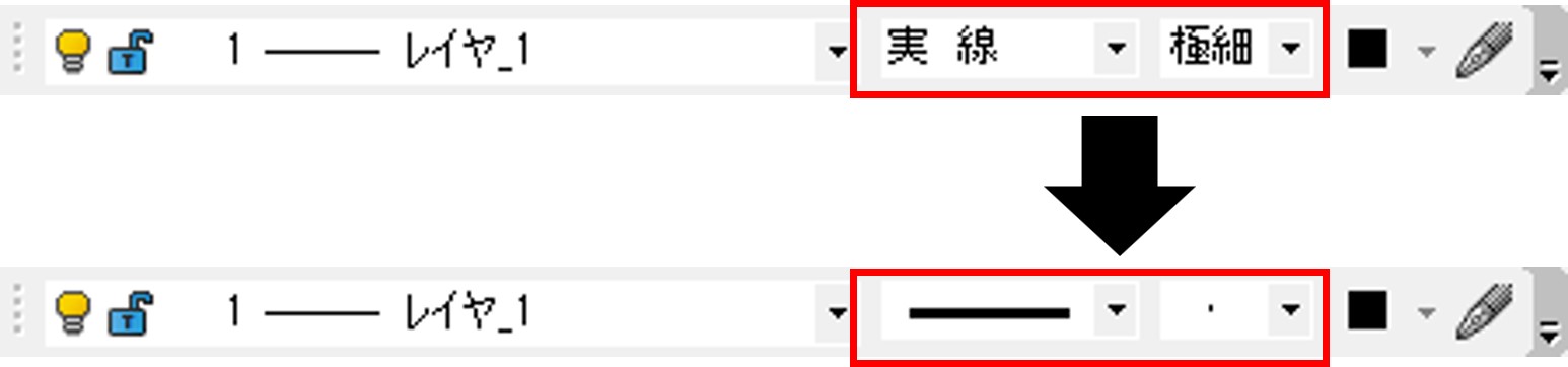 - 右側の[線種ツールバー]欄の[線種をイメージで表示する]にチェックを付けます。